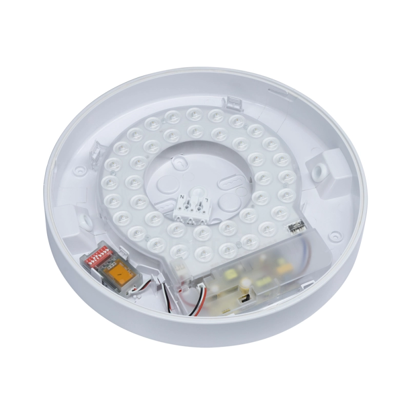 Praktisch ontworpen: de plafonnière is stof- en spatwaterdicht (IP54) en slagvast (IK10), waardoor hij geschikt is voor intensief gebruik. Bovendien is hij modulair opgebouwd — vervanging of onderhoud is eenvoudig — en voorbereid op sensorintegratie (optie voor HF-microwave bewegings-/daglichtsensor). Met een verwachte levensduur van meer dan 50.000 branduren en de stevige bouw is dit armatuur een betrouwbare, energie-efficiënte oplossing voor veelzijdige toepassingen.
