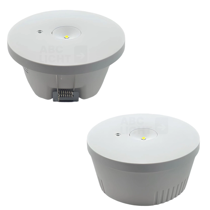De Isar inbouw- en opbouwarmatuur met een accuduur van 8 uur kan eenvoudig in het plafond worden gemonteerd met een stevige montageclip. Montage aan het plafond is ook mogelijk.